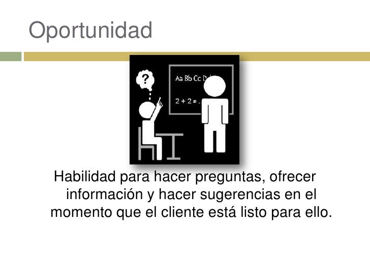 10. Oportunidad: Habilidad para hacer preguntas, ofrecer información y hacer